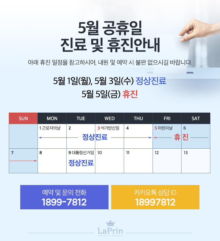 라프린 5월 공휴일 진료 및 휴진안내 - 공지사항